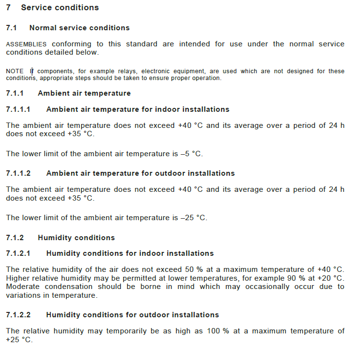 Here’s what BS 61349 says about temperature and humidity for an indoor LVAC board: